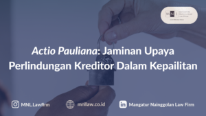 Ketentuan lebih lanjut mengenai Actio Pauliana diatur pada Undang-Undang Nomor 37 Tahun 2004 Kepailitan dan Penundaan Kewajiban Pembayaran Utang (“UUK-PKPU”) pada Pasal 41 menegaskan bahwa: “Untuk kepentingan harta pailit, kepada pengadilan dapat dimintakan pembatalan segala perbuatan hukum Debitor yang telah dinyatakan pailit yang merugikan kepentingan Kreditor, yang dilakukan sebelum putusan pernyataan pailit diucapkan.” Dengan demikian, meskipun tindakan pengalihan aset dilakukan sebelum Debitor resmi dinyatakan pailit, perbuatan tersebut tetap dapat dibatalkan apabila terbukti dilakukan untuk menghindari konsekuensi hukum dari kepailitan dan merugikan para Kreditor.
