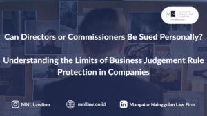 As a Director or Commissioner in a company, all decisions and policies made carry risks that could harm the company. This raises the question of whether Directors or Commissioners can be sued personally in civil or criminal court?. This question is one of the legal issues that often arises in corporate practice, especially when a company is faced with business losses, default, bankruptcy, or losses that result in financial losses to the state caused by a decision or policy of the Directors or Commissioners. This raises concerns for the Board of Directors or Commissioners in issuing corporate business decisions or policies, as losses may open up the possibility of personal liability (piercing the corporate veil). The following article will comprehensively discuss the limitations of the Business Judgment Rule in providing protection to the Board of Directors or Commissioners of a company.