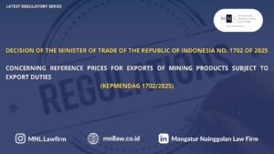 • KEPMENDAG 1702/2025 was established to implement the provisions of Article 2 paragraph (1) and Article 5 paragraph (2) of Minister of Trade Regulation No. 08 of 2023 on the Procedures for Determining the Export Reference Price for Mining Products Subject to Export Duty (PERMENDAG 8/2023) as amended by Minister of Trade Regulation No. 10 of 2025 (PERMENDAG 10/2025) on the Amendment to PERMENDAG 08/2023, regarding the Procedures for Determining the Export Reference Price for Mining Products Subject to Export Duty, it is necessary to determine the Export Reference Price for Mining Products Subject to Export Duty.