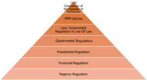 In the Indonesian legal system, the principle of lex superior derogat legi inferiori requires that regulations below the law may not add to or change the substance of norms established by law. The hierarchy of legislation is the foundation of the Indonesian legal system, designed to prevent conflicts between regulations and ensure that lower regulations do not exceed the limits set by higher regulations. This concept is reflected in Article 7 paragraph (1) of Law Number 12 of 2011 concerning the Formation of Legislation (“Law Number 12 of 2011”), which establishes the following hierarchy: